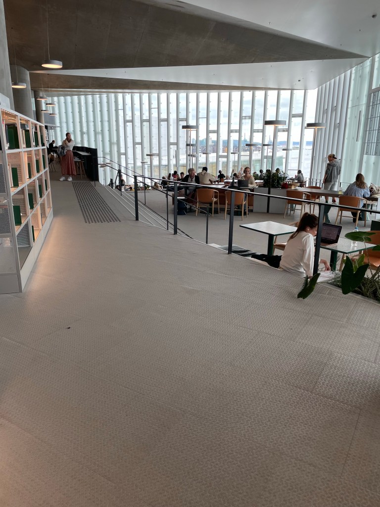 Forrige helg var jeg en tur i Oslo, og endelig fikk jeg mulighet til å besøke (nye) Deichman bibliotek. For et fantastisk bygg med fem(+) etasjer, og DEN utsikten! Her er det noe for de aller fleste. I tillegg til det vanlige som bøker; tegneserier; filmer; og musikk, har de også et skaperverksted med utstyr og maskiner man kanskje ikke har hjemme. Det er til og med kafé og bar på toppen! Vil du lese Nesbø på litauisk? Indriðason på originalspråket? Kanskje du du vil lese kurdisk? Ikke noe problem, det får du her!