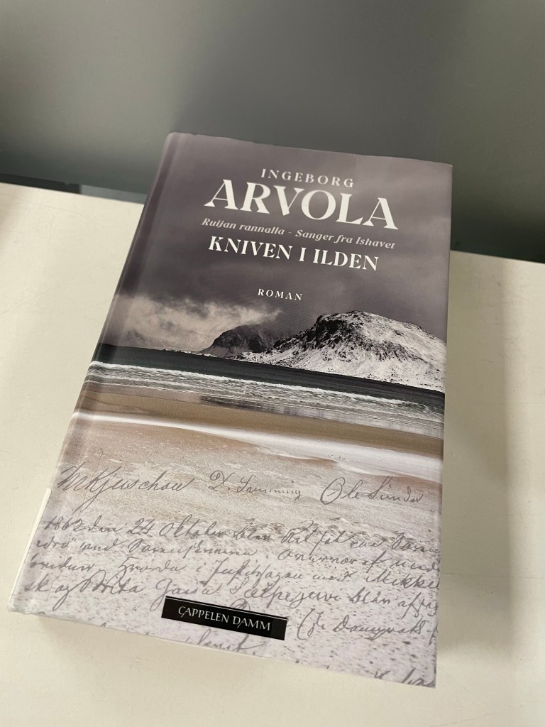 Ingeborg Arvolas Kniven i ilden er første bok i trilogien Ruijan rannalla – Sanger fra Ishavet. Dette er en historisk roman fra Finland og Finnmark med Arvolas tipptippoldemor som hovedkarakter, skrevet etter dagbøker hun har funnet. Her er det gjort grundig research. I november vant hun Brageprisen for Kniven i ilden. Gratulerer så mye!