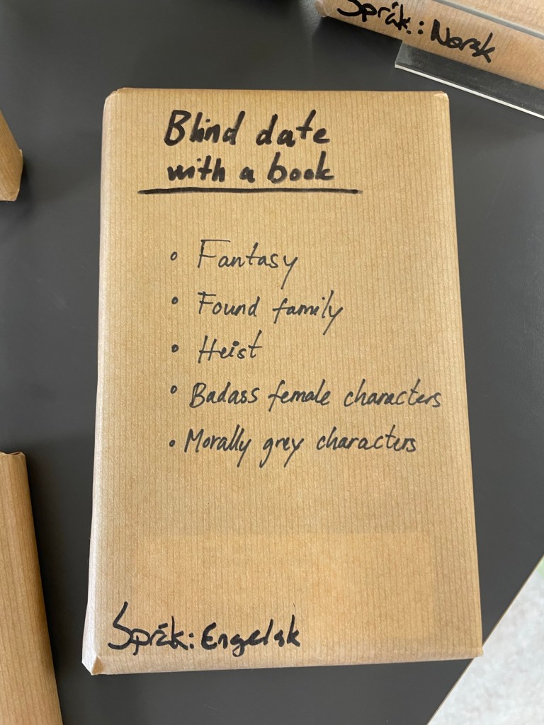 På jobben min, Trondheim folkebibliotek, har vi et lavterskeltilbud for ungdommer som heter Upolert. Her skal ungdom få være med på å planlegge, arrangere, promotere diverse litteraturtilbud. Det nyeste nå heter noe så kult som Blind Date With a Book og her skal deltakerne ha «speed-dates» med hverandre om bøker og lignende. Deltakerne kan hente ut bøker som er pakket inn i gråpapir med tropes og stikkord som bibliotekarer har valgt ut. Selve arrangementet skal foregå på Hovedbiblioteket i Midtbyen den 9. mai. Jeg syns det hele virker spennende og utrolig kreativt.