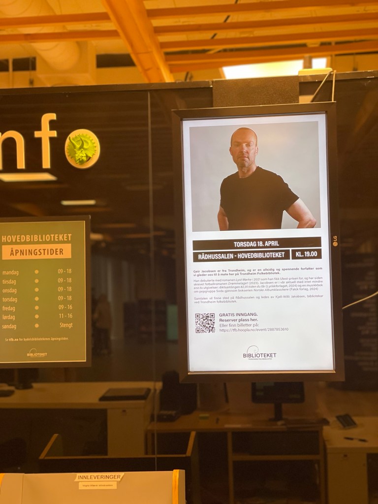 I slutten av mars skrev jeg at om Geir Jacobsens nye bøker, Sodapop og 82,91, og neste uke har jeg den ære å ha forfattersamtale med ham i Rådhussalen ved Trondheim folkebibliotek. Tenk å være så heldig at dette er en del av jobben min! Dette blir veldig spennende, og jeg ser veldig fram til å snakke bøker, og samtidig dele det med folk. Alle er hjertelig velkommen!